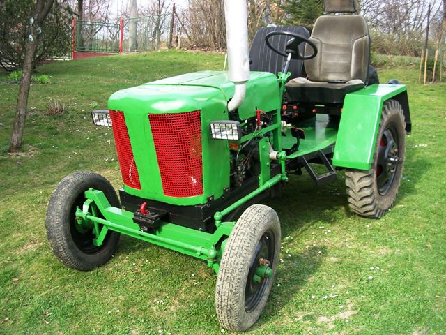Tento traktor domácí výroby byl naším prvním mazlíkem. Postupem času získal důležitou pozici v našem každodenním životě. Udělá mnoho práce, je to opravdový pomocník. Má využití v těchto oblastech: vození všelijakých nákladů (sypké materiály, dřevo, seno, ale také tekutiny - cisterna), převoz štípače dřeva a případné zajištění jeho pohonu, tahání válce apod.